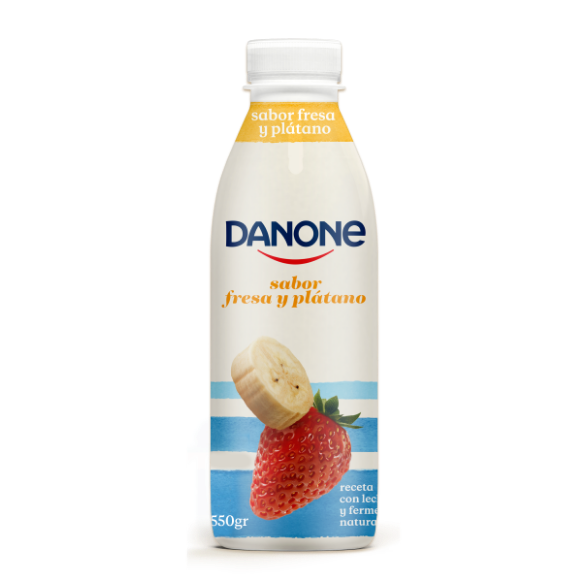 Danone para beber, con un formato adaptable para llevar a cualquier lugar y una receta suave y cremosa con un exquisito sabor a fresa y plátano.