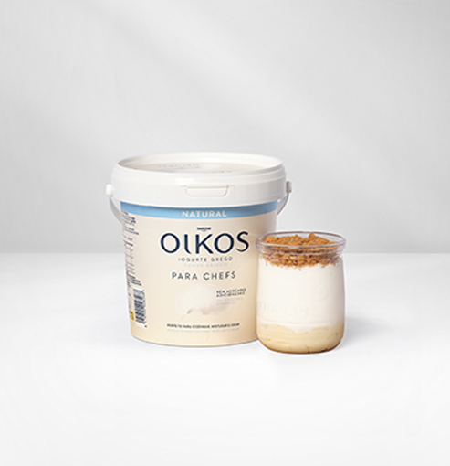 Disfruta de esta receta con yogurt Oikos, crumble, toffe y plátanos en rodajas.